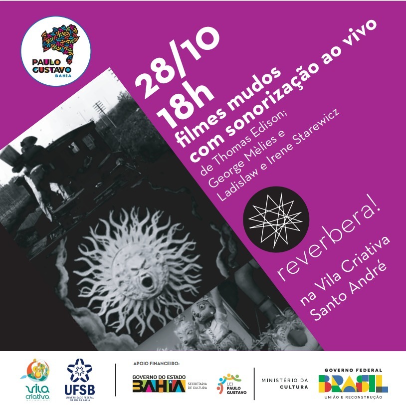 O Reverbera! é um projeto contemplado pelos Editais da Paulo Gustavo Bahia e tem apoio financeiro do Governo do Estado da Bahia através da Secretaria de Cultura via Lei Paulo Gustavo, direcionada pelo Ministério da Cultura, Governo Federal. Paulo Gustavo Bahia (PGBA) foi criada para a efetivação das ações emergenciais de apoio ao setor cultural, visando cumprir a Lei Complementar nº 195, de 8 de julho de 2022. O projeto também tem apoio da Universidade Federal do Sul da Bahia. Mais informações pelo Instagram do @reverbera.imagina.